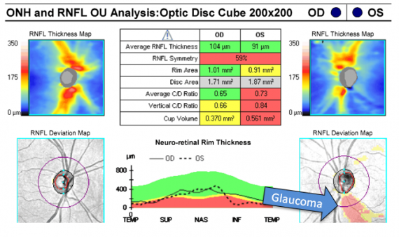 OCT printout showing left eye glaucoma >