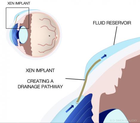 Xen is performed in theatre under sterile conditions. Like all eye operations there is a small risk of infection or bleeding but generally this is minimal. The eye pressure might become too low temporarily, causing a temporary blurring of vision. Over time the Xen may scar or become blocked, and the scar tissue might need to be removed (an office-based procedure).